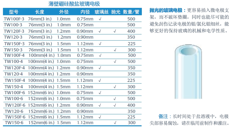 6、拉制好的玻璃電極(Pre-Pulled Glass Pipettes)