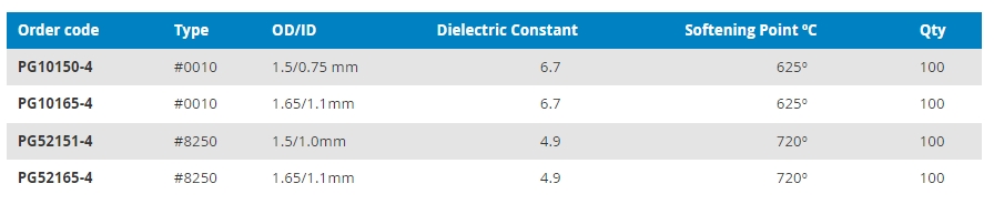 PG10150-4 和 PG10165-4 由Corning #0010 玻璃組成,這是一種高鉛含量 (22% PbO) 玻璃。